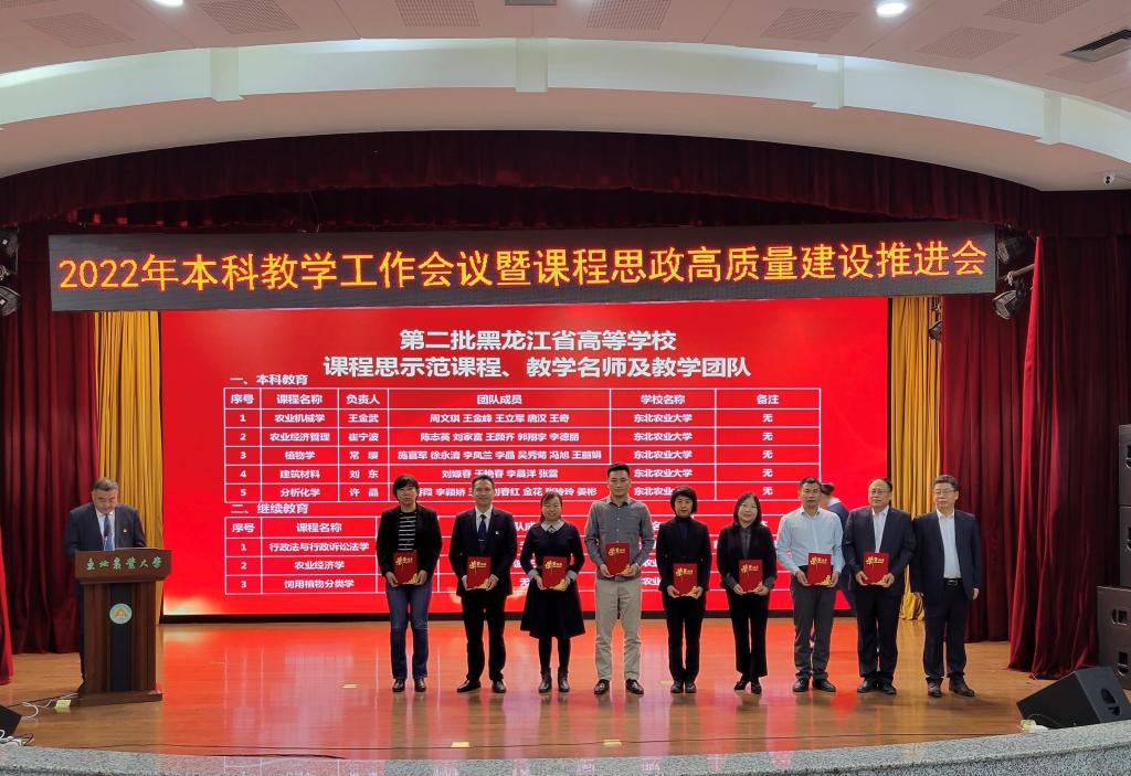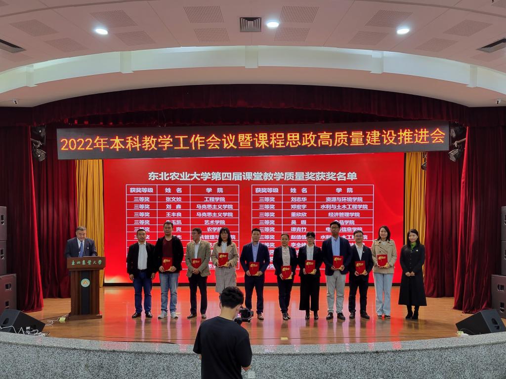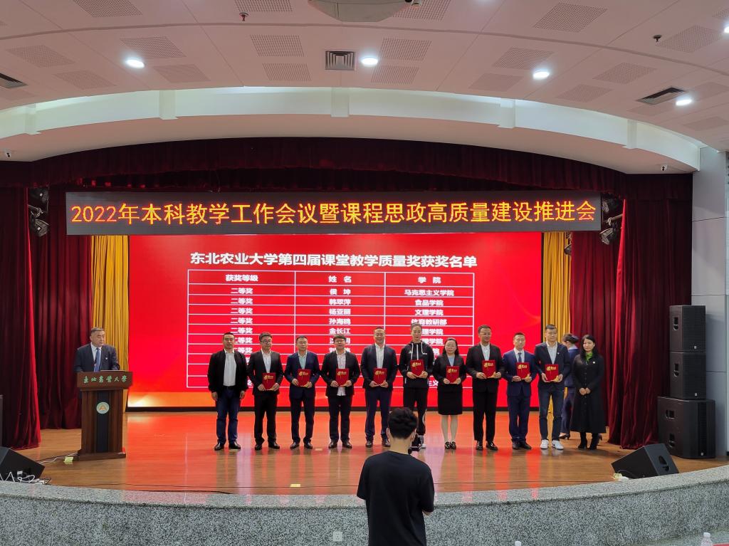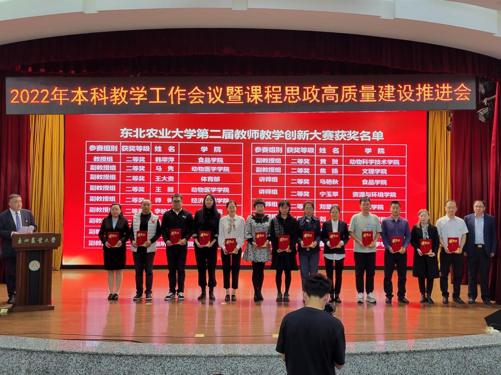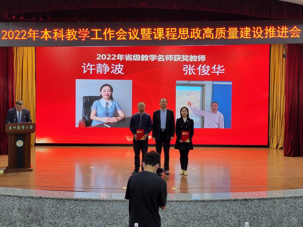省级教学名师樊东为东北农业大学第十届教学名师颁发荣誉证书,副校长李伟凯为2022年省级教学名师获奖教师颁发荣誉证书。