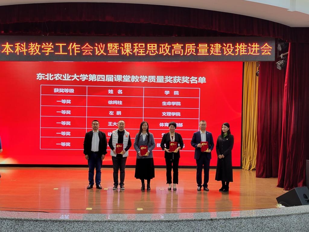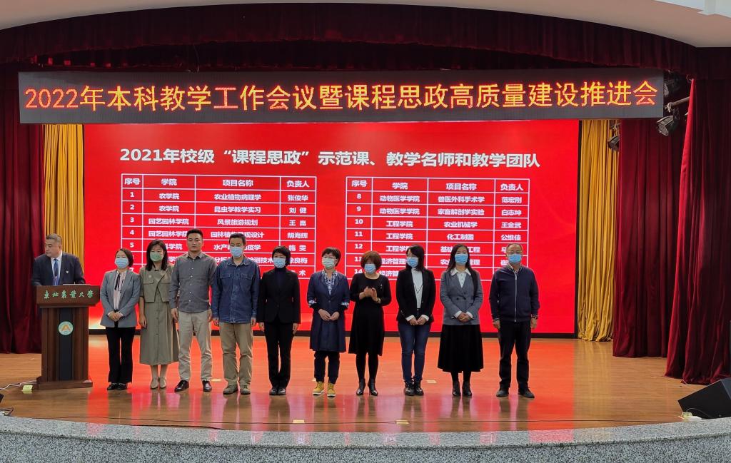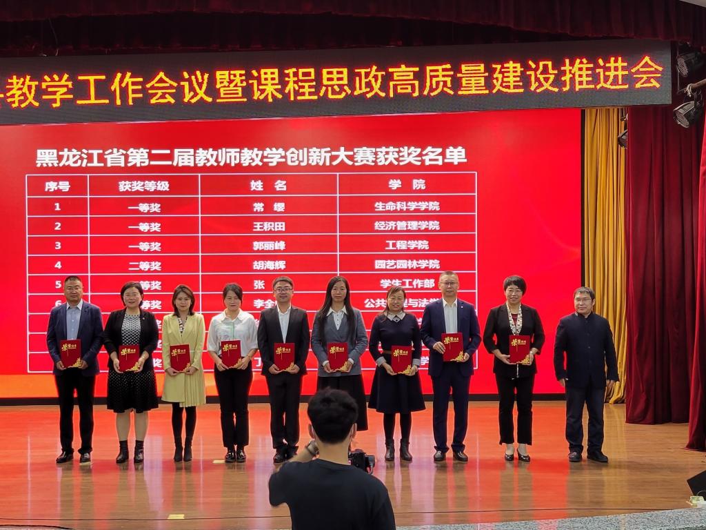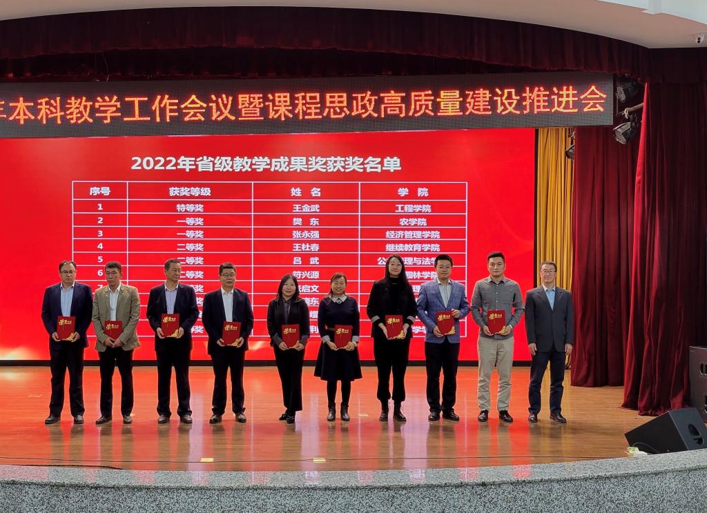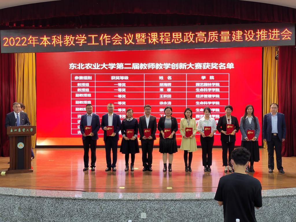 省级教学名师樊东为东北农业大学第十届教学名师颁发荣誉证书,副校长李伟凯为2022年省级教学名师获奖教师颁发荣誉证书。