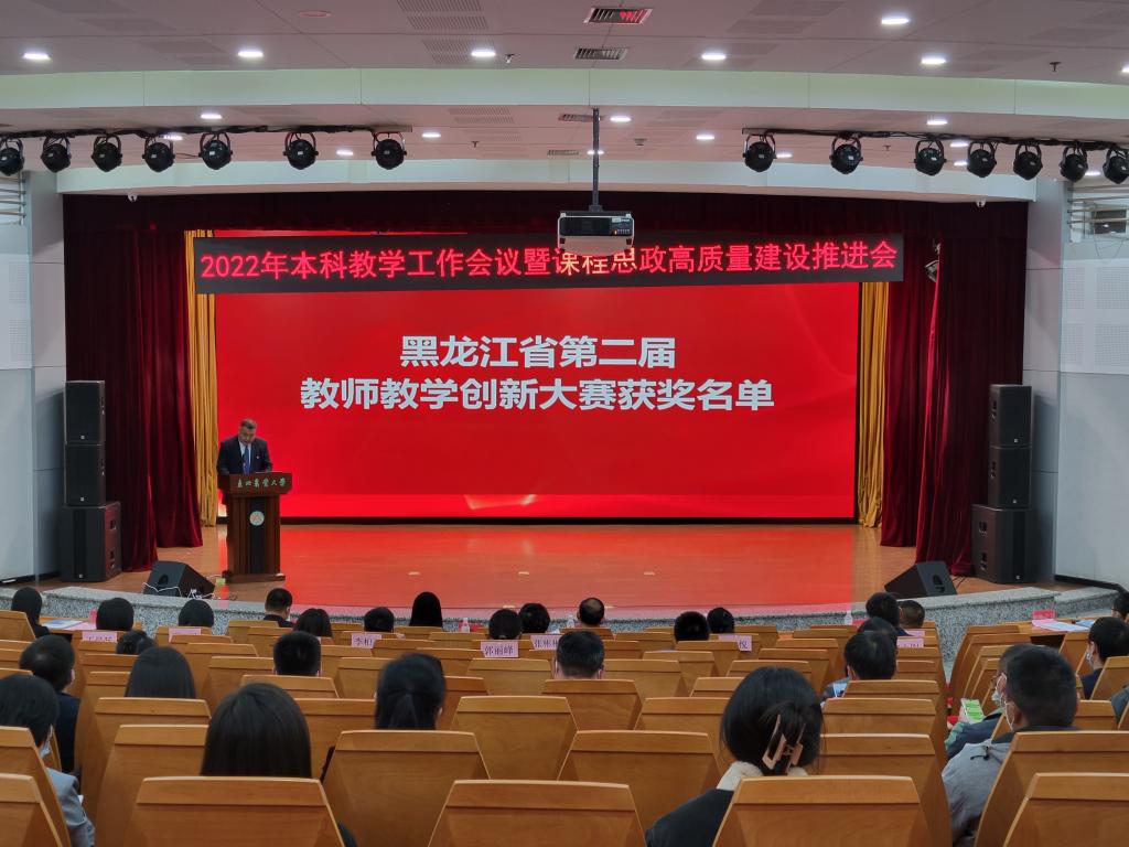 首先,教务处处长张永强宣读2021年校课程思政示范课、教学名师和教学团队名单,第二批黑龙江省高等学校课程思政示范项目获奖名单,我校第四届课堂教学质量奖、校首届优秀教案评选结果、第二届教师教学创新大赛、校第十届教学名师、2022年省级教学名师,以及2022年省级教学成果奖获奖名单。
