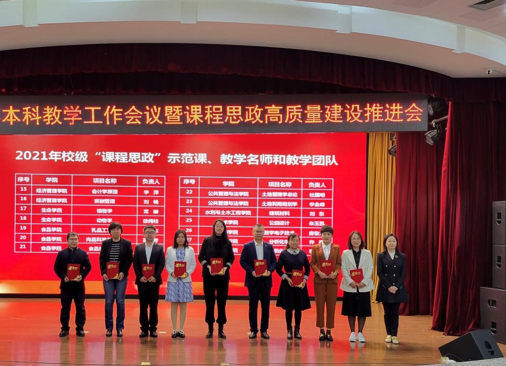 宣读完毕后,大会举行了颁奖仪式,马克思主义学院院长许静波为2021年校课程思政示范课、教学名师和教学团队教师代表颁发荣誉证书。