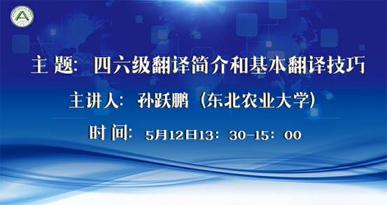 关于开展四、六级翻译能力提升系列讲座的通知 管理员 2021年05月06日 11:14 浏览次数:次 关于开展四、六级翻译能力提升系列讲座的通知 为了提高我校学生在英语四、六级考试中的翻译能力,应我校广大学生的强烈要求,教务处特别邀请文理学院公共外语部孙跃鹏老师为我校学生进行英语四、六级考试汉译英能力提升指导讲座。讲座将采用线下和线上同步直播的方式以满足更多同学的需求。欢迎各位同学参加! 主讲教师简介 : 孙跃鹏,副教授,毕业于南开大学外国语学院,访学于英国曼彻斯特大学翻译研究中心。黑龙江翻译协会会员,中国典籍翻译研究会会员。参与并主持省厅级教学科研项目十余项,撰写学术论文二十余篇,出版教材学术专著八部。在省校级各类教学竞赛中获奖,并指导学生在翻译竞赛中获奖。 讲座具体安排: 一、四六级翻译简介和基本翻译技巧 网络直播二维码 电脑网页打开 http://lc.zhihuishu.com/base/live.html?liveId=10724087 二、 四级翻译真题讲解 网络直播二维码 电脑网页打开 http://lc.zhihuishu.com/base/live.html?liveId=10724088 三、 六级翻译真题讲解 网络直播二维码 电脑网页打开 http://lc.zhihuishu.com/base/live.html?liveId=10724089 教务处 2021年5月6日 上一条:关于上报休学期满未按期复学学生处理意见的通知 下一条:关于2021 年东北农业大学规划教材建设立项评选结果的公示 关闭