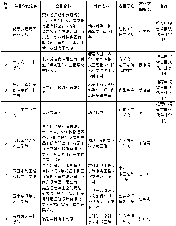 根据《教育部办公厅工业和信息化部办公厅关于印发〈现代产业学院建设指南(试行)〉的通知》(教高厅函〔2020〕16号),以及黑龙江省教育厅下发的《关于开展首批现代产业学院遴选工作的通知》,经学院初审推荐、教务处复审、专家评审等环节,拟确定以下8个产业学院为校级现代产业学院,其中4个产业学院拟推荐申报黑龙江省首批现代产业学院。