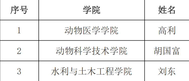 根据省教育厅和学校相关文件通知精神,学校组织开展了东北农业大学第十一届教学名师遴选,2023年黑龙江省普通高等学校省级教学名师及国家级教学名师候选人推荐工作。经个人申请、学院推荐、教务处复核、专家评审,共评选出第十一届校级教学名师5名;推荐省级教学名师候选人3名,国家级教学名师候选人3名,详见附表。
