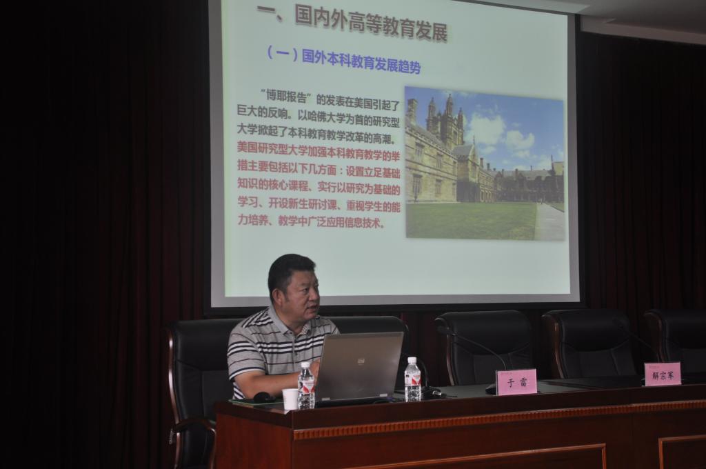8月27日下午15:40-17:00,我校教务处教师发展中心在继续教育学院707举办了新教师培训的第三场报告。教务处处长王杜春为新教师作了“一流本科建设”的报告。他首先介绍了国外本科教育发展趋势与国内高等教育发展现状以及我国高等教育的发展要求。接着,王杜春从本科专业布局、教学团队建设与质量工程项目、卓越农林人才教育培养计划项目等十二个方面总结了我校本科教育建设的基本情况,其中对我校本科教育中存在的主要问题从教学观念、教学管理体制、专业发展、教学资源、教学实践条件以及教学积极性六个方面作了具体阐述。最后,他明确了我校本科教学综合改革的目标,并对我校本科教学综合改革的主要任务细分为:学校内部质量保障体系改革;专业建设与淘汰机制的建立;教育教学方法改革;学籍管理、考核方式、毕业论文等教学环节改革;企协同育人模式改革;教师教学能力提升。