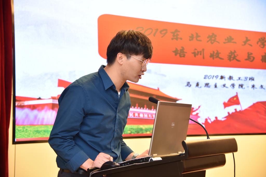 第四个模块“学员论坛与风采展示”,安排两次学员论坛,以“分享学习生活经历中一件有意义的事”和“结合‘三全育人’为主题,谈谈在未来的工作中如何将实际工作与育人相结合”。展示了每位新教师的特点、特长,充分激发出每位新教师的创造力、想像力,提高各位参培教师对东农这块热土的使命感、责任感和归属感。