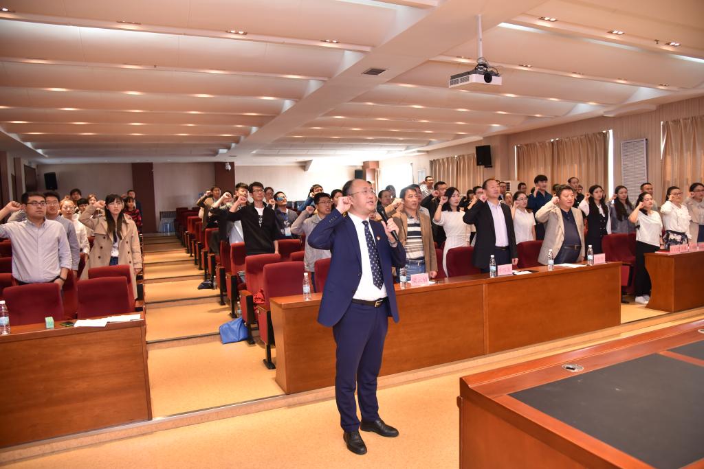 教师代表汇报后,水利与土木工程学院院长博士生导师付强教授,带领所有新教师进行入职宣誓。