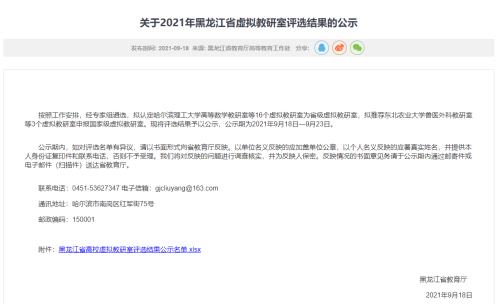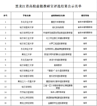 近日,黑龙江省教育厅公布了《关于2021年黑龙江省虚拟教研室评选结果的公示》,认定16个虚拟教研室为省级虚拟教研室,推荐3个虚拟教研室申报国家级虚拟教研室。我校动物医学学院王洪斌教授牵头申报的“兽医外科学教研室”位列其中,并被推荐申报国家级虚拟教研室。