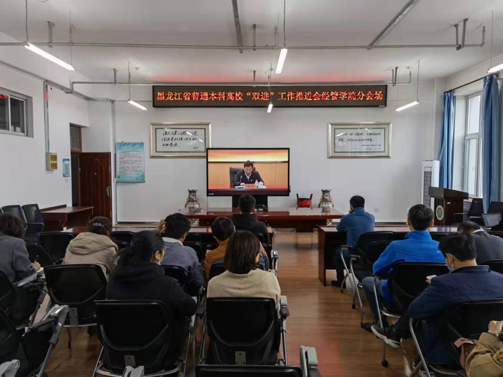 为深入学习贯彻习近平总书记在庆祝中国共产党成立100周年大会上的重要讲话精神,落实《国家教材委员会关于印发<习近平新时代中国特色社会主义思想进课程教材指南>的通知》和教育部高等教育司《关于推广使用“中国共产党历史”专题课的通知》要求,赓续红色血脉,传承伟大建党精神,在全省本科高校全面推进“习近平新时代中国特色社会主义思想进课程教材”和“中国共产党历史专题课”进课程(以下简称“双进”工作),进一步推动我省高校课程思政高质量建设,10月18日上午,我校在主楼604室组织参加省教育厅“双进”工作推进会。副校长李伟凯、教务处长张永强及各学院院长参加会议。各学院党委书记、教学副院长、系主任及部分教师在学院分会场参加会议。