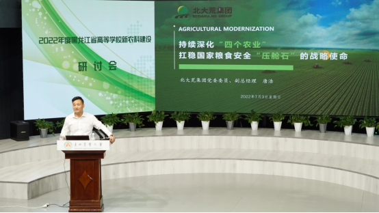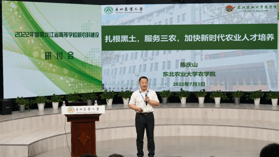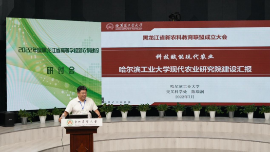 我校农学院院长陈庆山、哈尔滨工业大学交叉科学处处长陈瑞润、黑龙江建三江国家农业科技园区管委会副主任郭震和北大荒集团副总经理唐浩做大会报告。