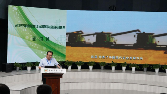 会上,省教育厅二级巡视员丁哲学同志和我校校长付强共同为黑龙江省新农科教育联盟揭牌,涉农高校、佳木斯农高区、企业代表共同点亮会标。