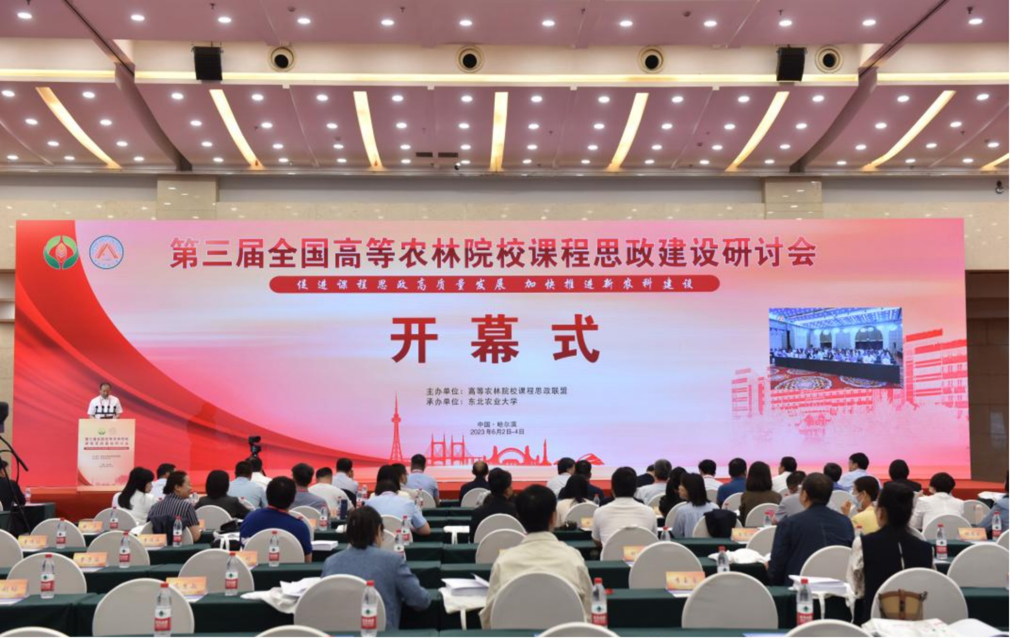 为全面贯彻落实党的二十大精神,深入开展学习贯彻习近平新时代中国特色社会主义思想主题教育,落实习近平总书记在中共中央政治局第五次集体学习上的重要讲话精神,持续强化课程思政教学研究改革,促进高等农林院校新农科建设经验交流,推进高等农林教育创新发展,6月3日,第三届全国高等农林院校课程思政建设研讨会在我校以线上线下相结合方式隆重召开。教育部高等教育司二级巡视员张庆国,黑龙江省教育厅二级巡视员丁哲学,课程思政联盟理事长、华中农业大学副校长青平,东北农业大学校长付强,黑龙江省教育厅高教处处长孙世钧,以及来自全国33所农林院校的教育教学研究专家,高校教师代表和教学管理人员共计300余人相聚哈尔滨,共同探讨“促进课程思政高质量发展,加快推进新农科建设”。副校长李伟凯主持会议。8000余人次在线观看研讨会直播。