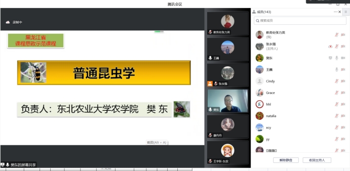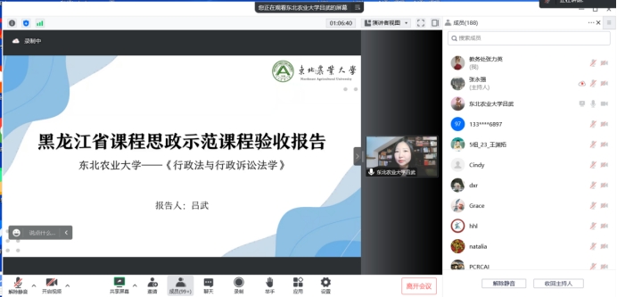 2022年11月18日下午,我校通过腾讯会议组织召开了东北农业大学省首批高校课程思政示范项目验收答辩与教学观摩会。会议由教务处处长张永强主持,邀请校内外7位专家现场评审和点评,各教学单位200余名教师进行了线上教学观摩。