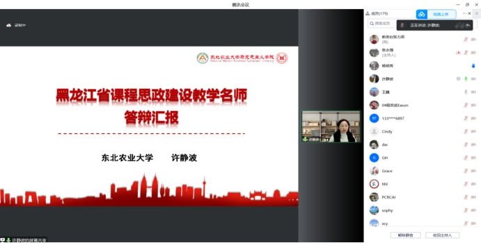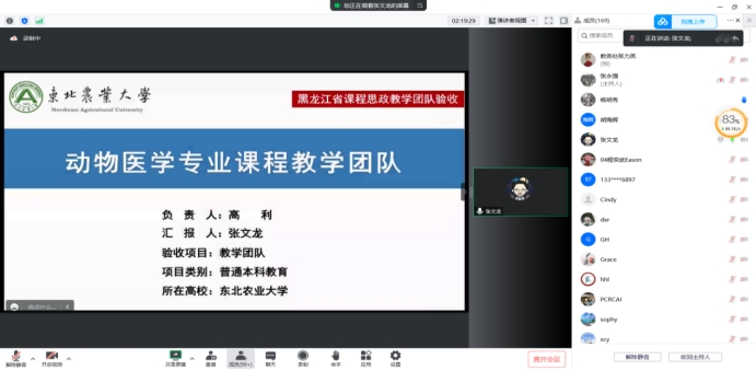 会上,我校首批入选黑龙江省课程思政示范课程负责人樊东、吕武和杨亚丽,首批入选黑龙江省课程思政教学名师许静波,首批入选黑龙江省课程思政教学团队“动物医学专业课程教学团队”主要成员张文龙依次围绕建设完成情况、示范辐射作用发挥和未来建设计划等方面进行答辩陈述。