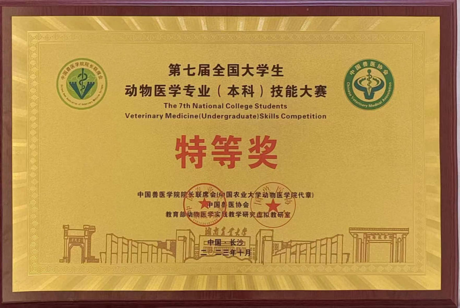 第七届全国大学生动物医学专业(本科)技能大赛团体特等奖