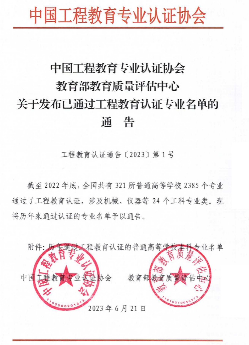 6月29日,中国工程教育专业认证协会、教育部教育质量评估中心下发《关于发布已通过工程教育认证专业名单的通告》(工程教育认证通告〔2023〕第1号),我校乳品工程专业顺利通过工程教育认证,认证有效期6年。乳品工程专业是目前全国唯一通过工程认证的同类专业,也是继食品科学与工程专业之后,我校第二个食品科学与工程类专业通过国家工程教育认证,实现了学校专业建设又一新突破。