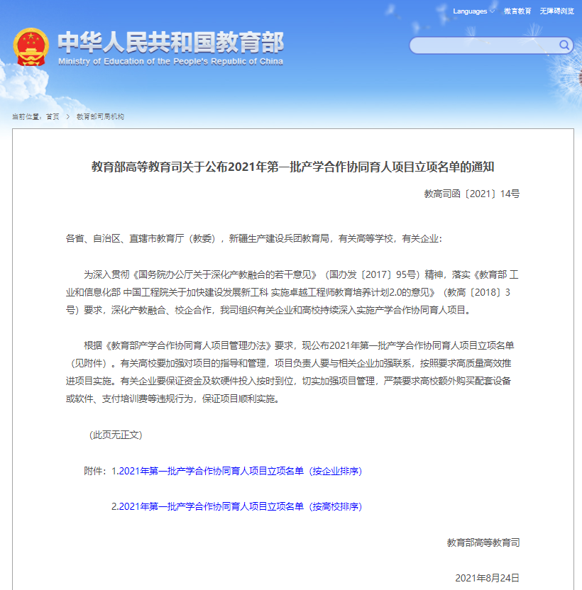 近日,教育部高等教育司公布了2021年第一批产学合作协同育人项目立项名单,我校电信学院赵语老师申报的《基于天池AI的<数据挖掘技术>教学案例与课程内容开发》、文理学院杨亚丽老师申报的《跨文化交际思政课程研发与教师培训》和公共管理与法学院才正老师申报的《5G智慧校园技术与行政管理专业教学的融合与实践》3个项目成功立项。