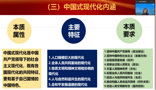 会上,康丹丹教授以《中国式现代化的三重逻辑与价值意蕴》为题,结合党的二十大报告精神,从中国式现代化的内涵、中国式现代化的三重逻辑和中国式现代化的价值意蕴等三个方面进行了培训。