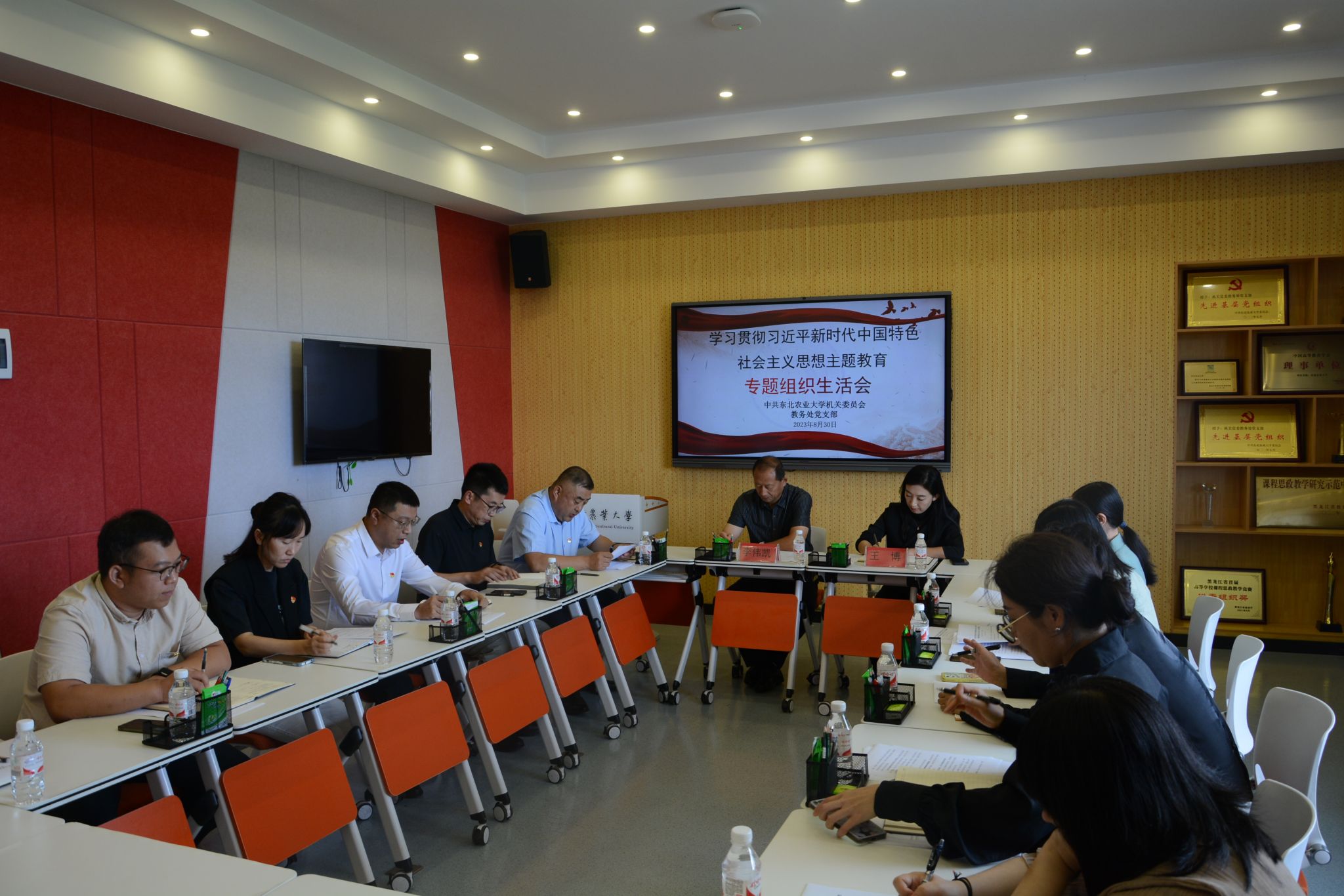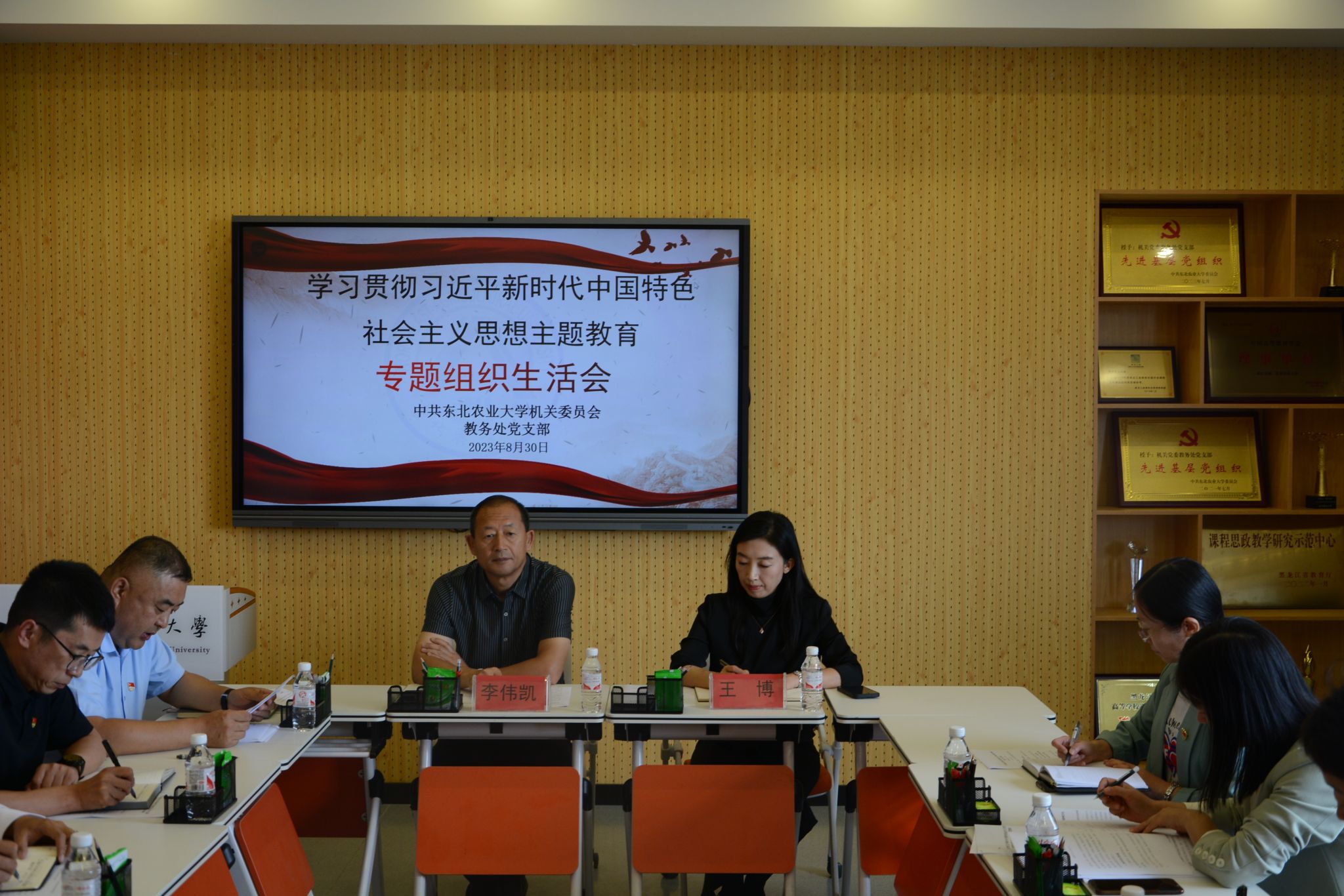 8月30日下午,教务处党支部在主楼532会议室召开了学习贯彻习近平新时代中国特色社会主义思想主题教育专题组织生活会,校第三指导组组长李伟凯、副组长王博到会指导,教务处党支部全体党员参会,科级非党员干部和2023年新入职党员列席会议。会议由党支部书记张永强主持。