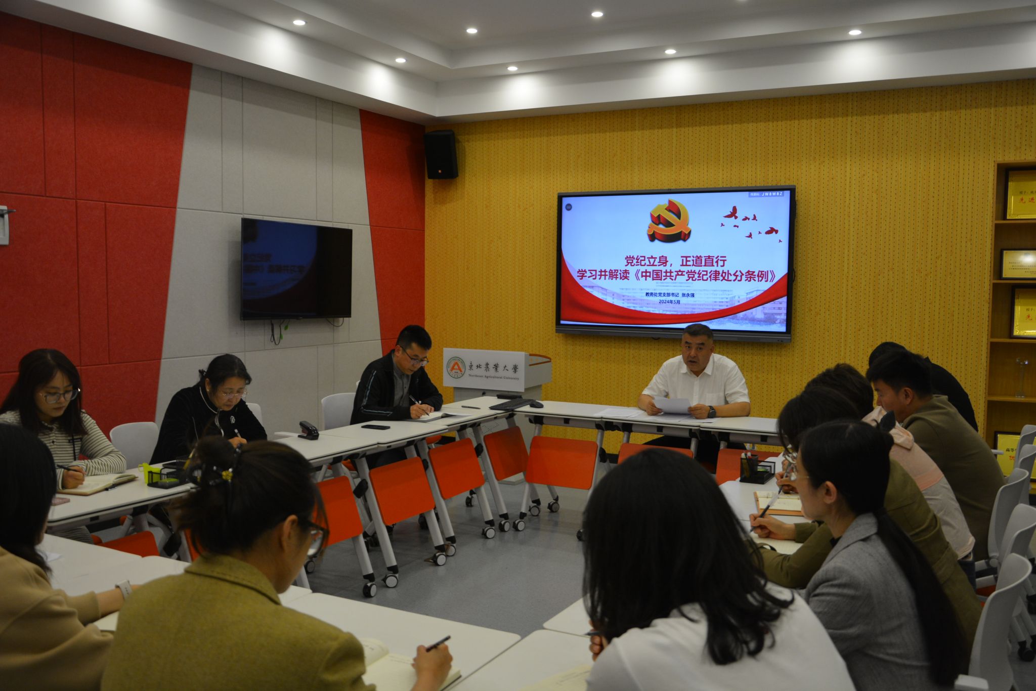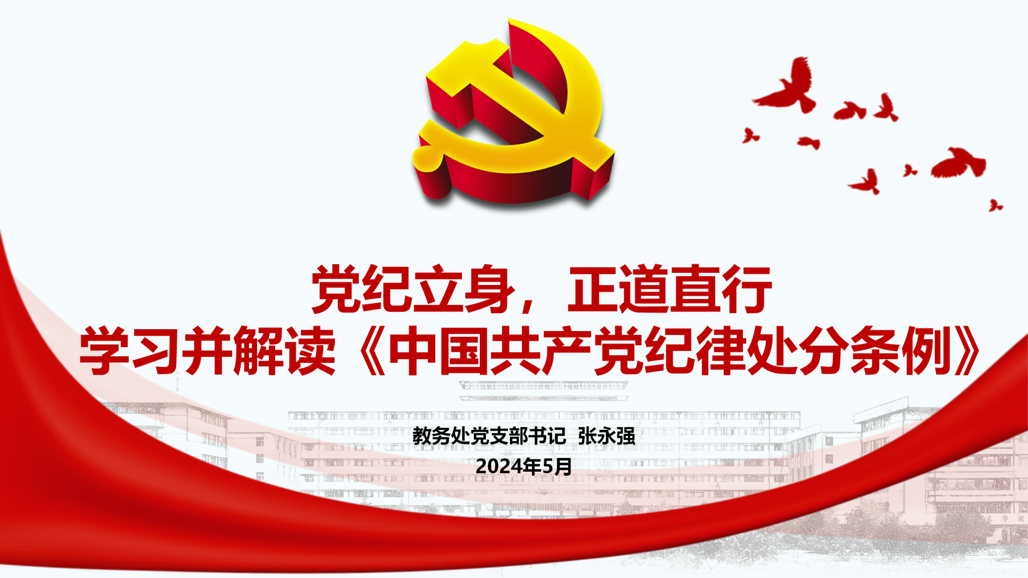 为深入学习贯彻习近平总书记关于党纪学习教育的重要讲话和重要指示精神,扎实推动党纪学习教育走深走实,5月29日,教务处党支部开展了学习并解读《中国共产党纪律处分条例》主题党日活动。