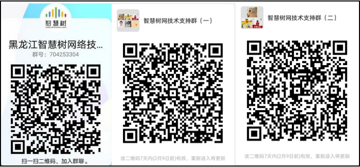 为促进龙江高校教师在“智慧树网”平台使用和教学改革方面的进一步交流,平台方组建了智慧树网技术支持 QQ 群和技术支持微信群,为教师线上教学提供全方位支持。请老师打开手机 QQ 或者微信扫描以下对应二维码即可加入黑龙江省智慧树技术支持群(QQ 群号:704253304;微信群如加入受限时,请加入其他微信技术支持群)