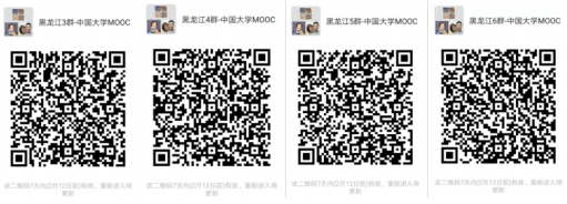 为促进龙江高校教师在中国大学 MOOC 平台使用和课程建设方面的进一步交流,平台方组建了微信群,请扫码加入其中之一即可。(微信群如加入受限时,请加入其他微信技术支持群)