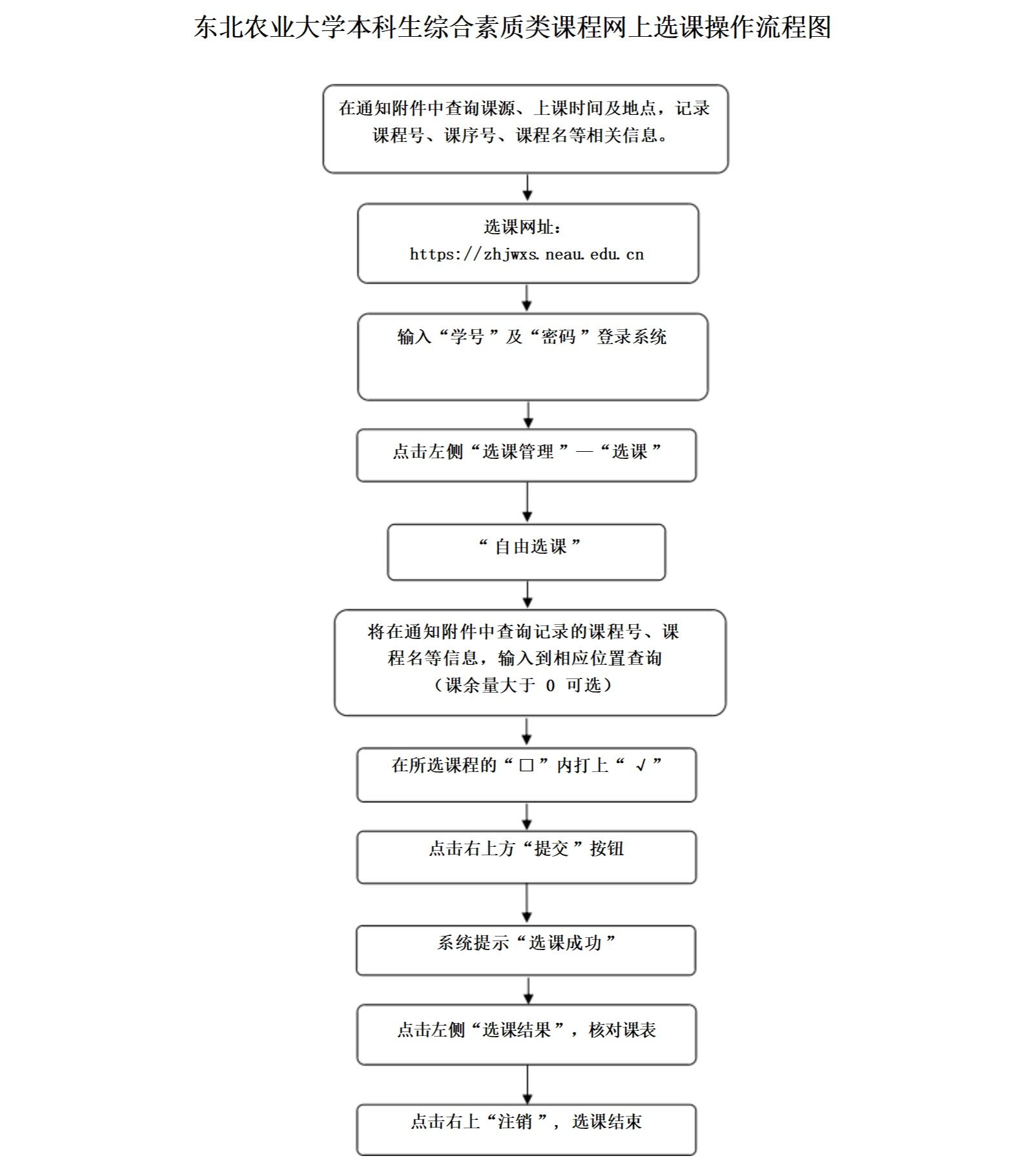 东北农业大学本科生综合素质类课程网上选课操作流程图